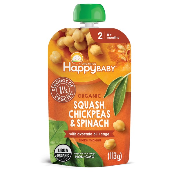Happy Baby Organic Squash, Chickpeas & Spinach Baby Food, 4 OZ