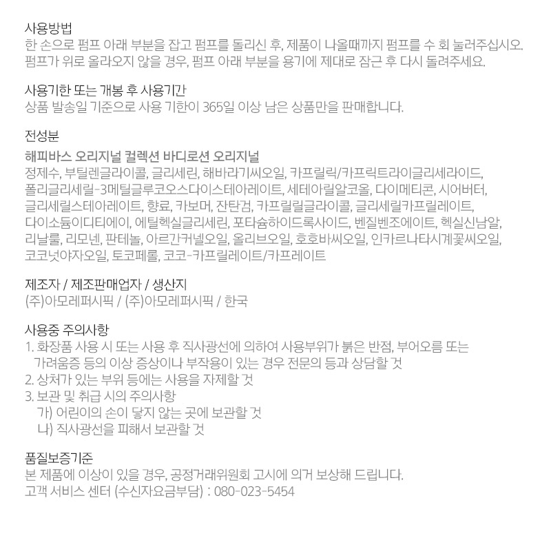 해피바스 오리지널 컬렉션 바디로션 오리지널 500g