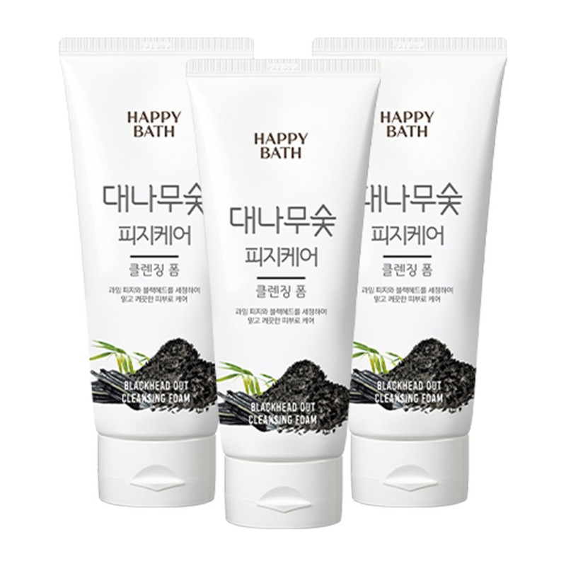 Happy Bath Bamboo Charcoal Sebum Absorption Cleansing Foam 200g x 3 / 해피바스 대나무숯 피지흡착 클렌징 폼 200g x 3개