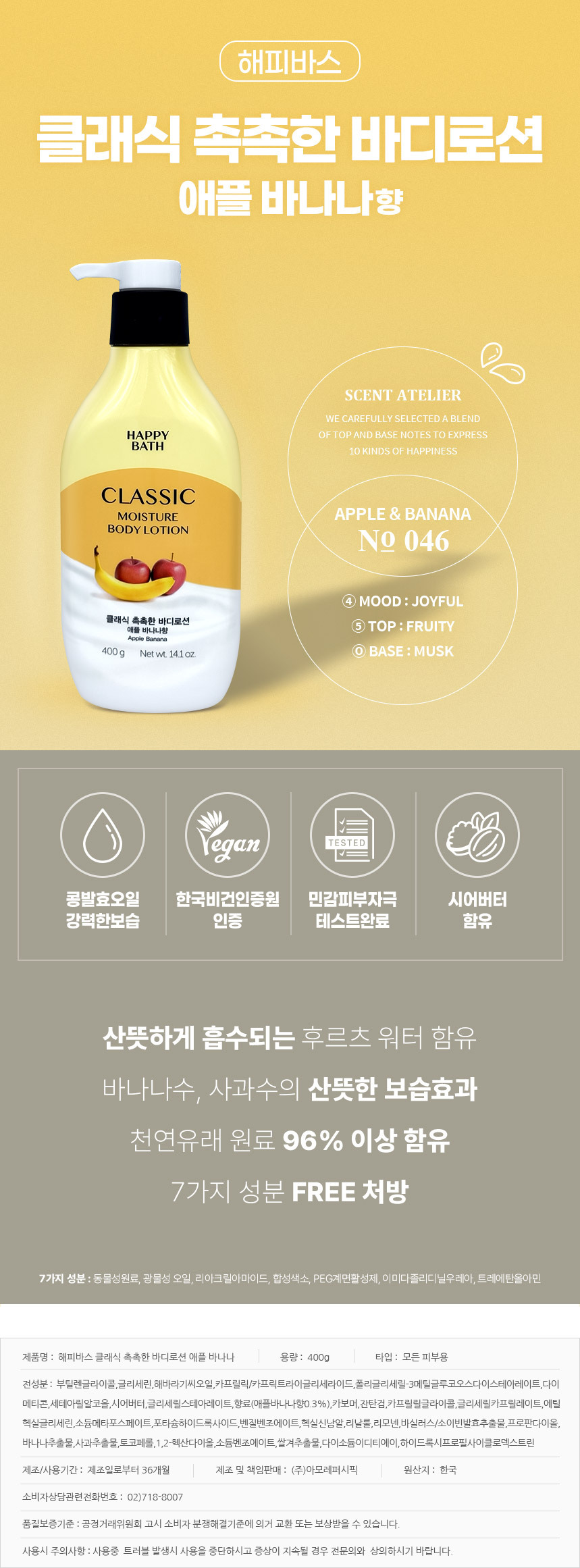 해피바스 클래식 촉촉한 바디로션 400g 3개팩