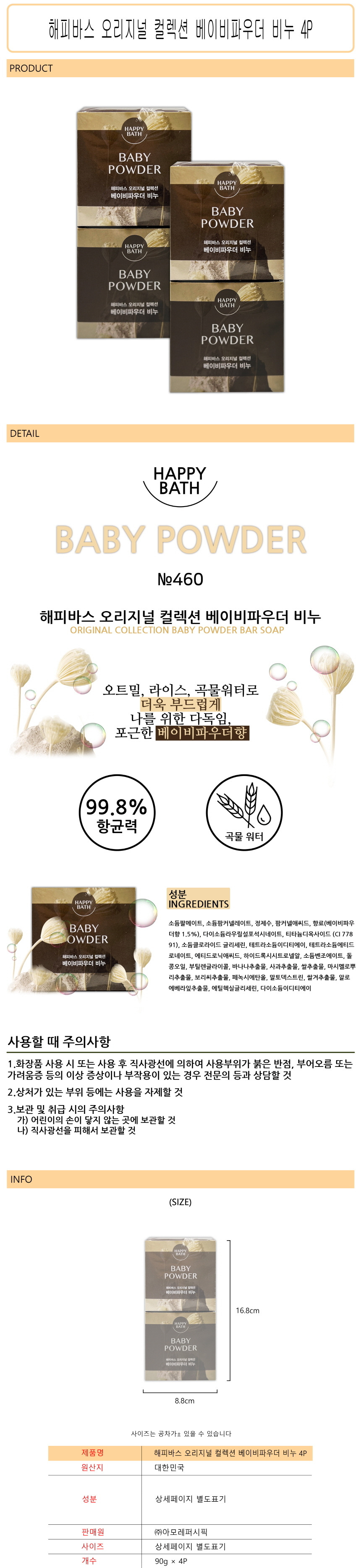 Happy Bath Original Collection Baby Powder Soap 4P -O / 해피바스 오리지널 컬렉션 베이비파우더 비누 4P -O