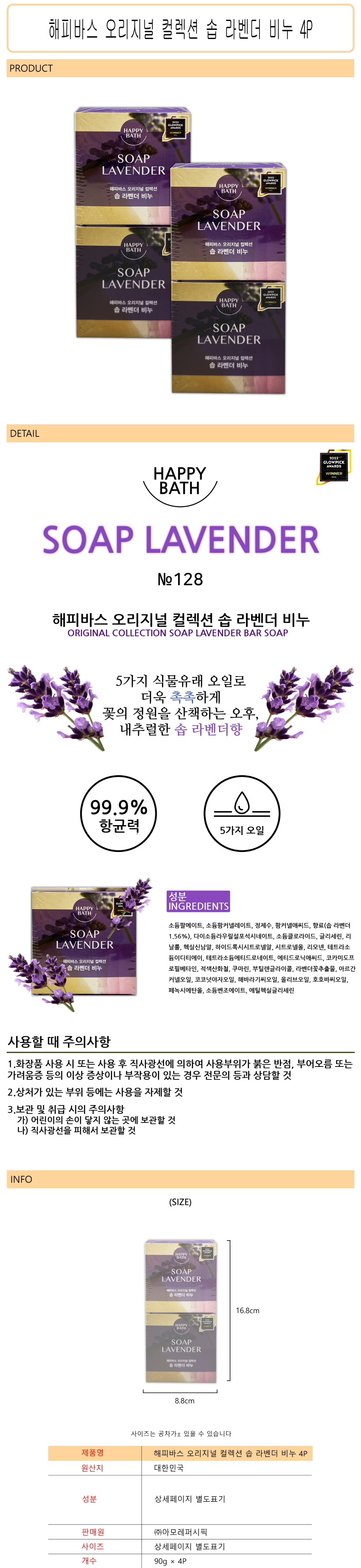해피바스 오리지널 컬렉션 솝 라벤더 비누 4P -O