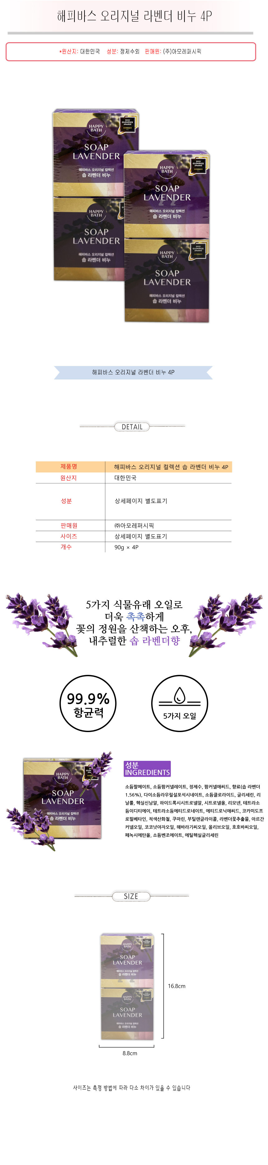 해피바스 비누 세수 세안 클렌징 비누 라벤더향 4개