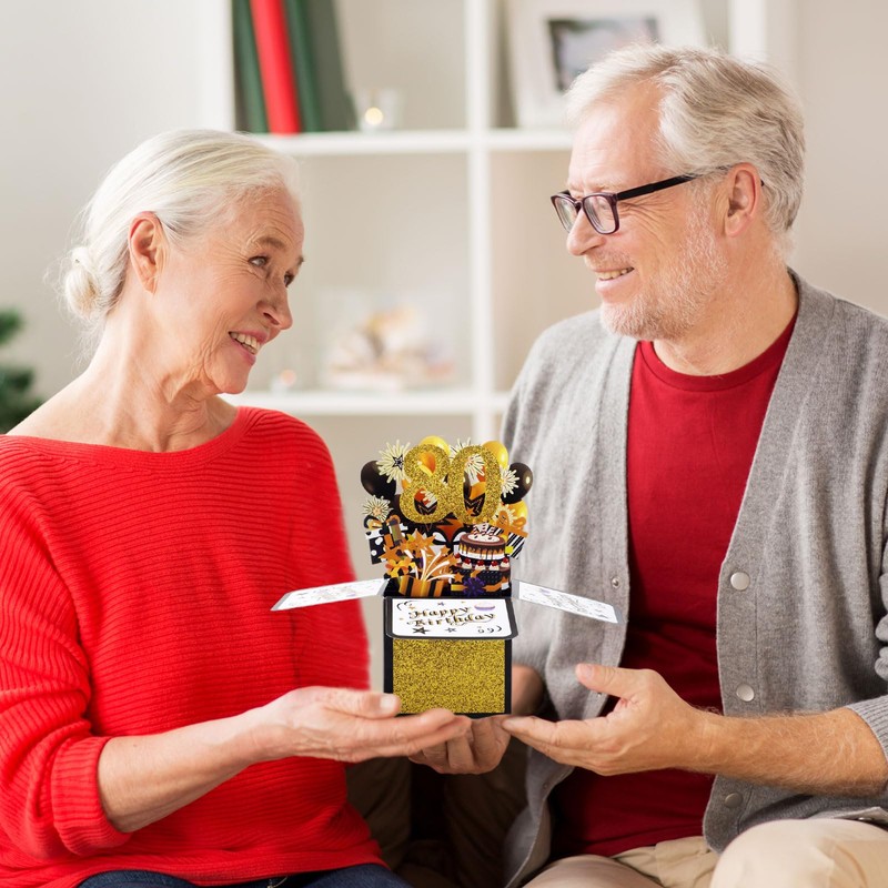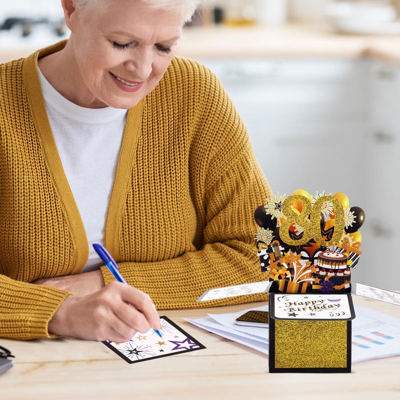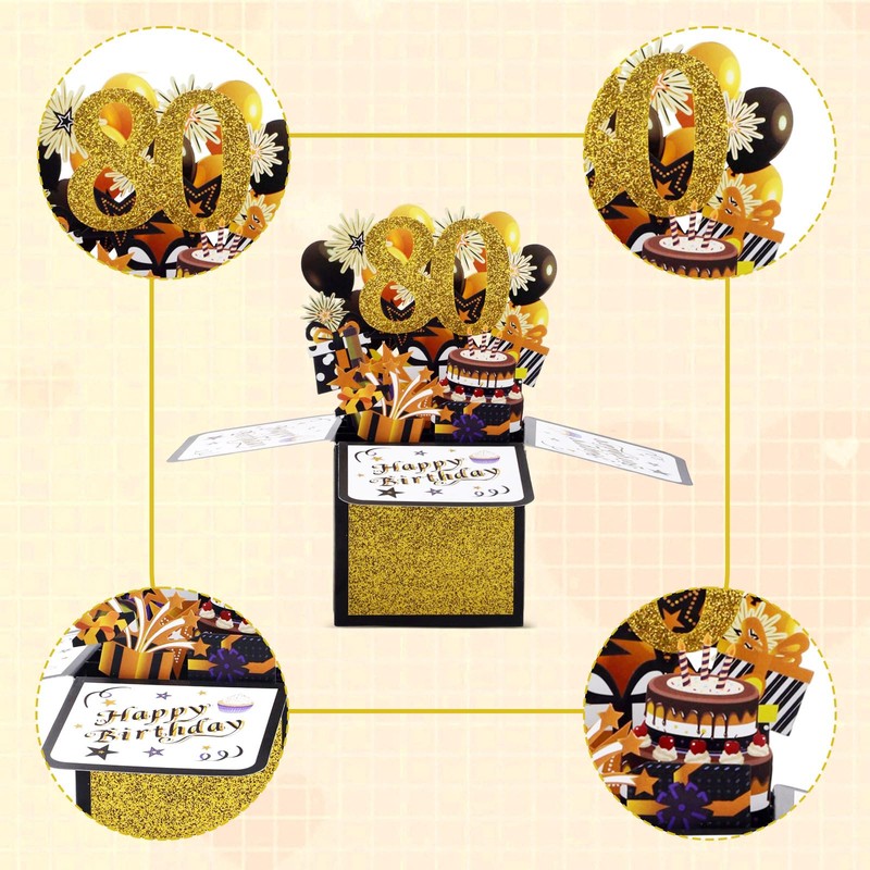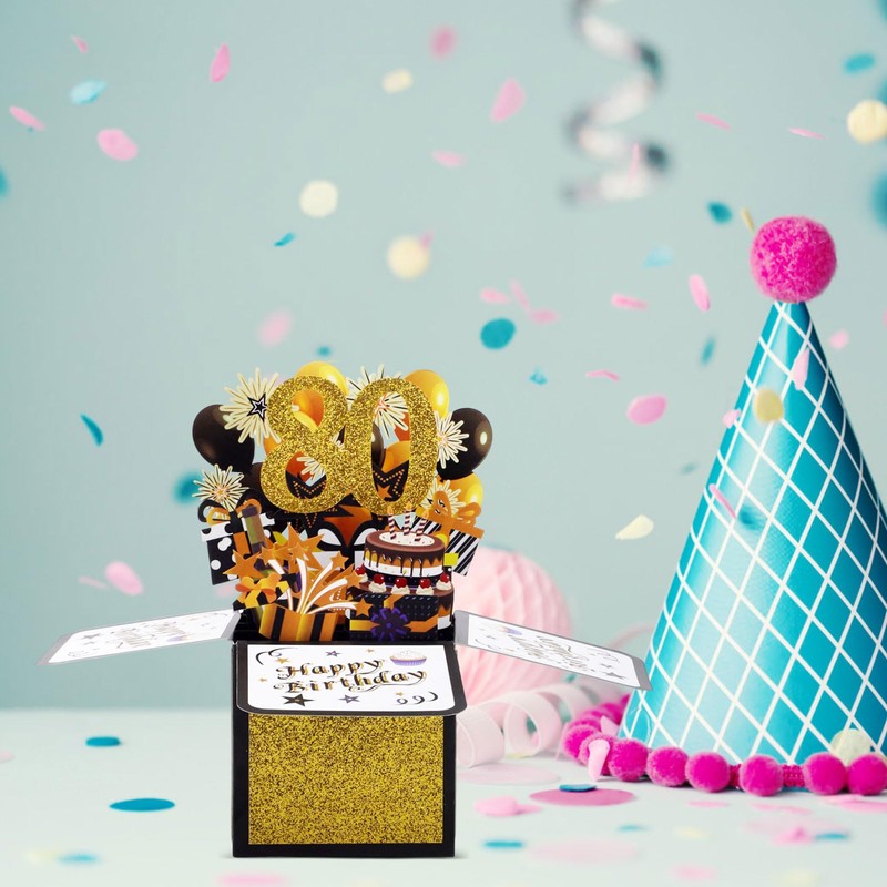 Happy Birthday 3D Pop-Up Card, Colorful Pop up Birthday Box with Envelope & Greeting Card Creative Birthday Gifts Box Cool Pop up Birthday Card for Men Women (80th)