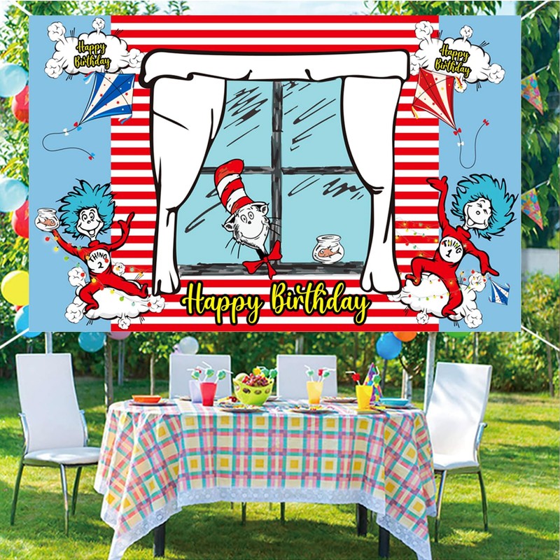 - Large Happy Birthday Backdrop:The birthday backdrop size is 70.8X43.3 inches/180X110cm, large enough for Cat in the Hat themed birthday party decoration and photography background, adding special atmosphere for your birthday party