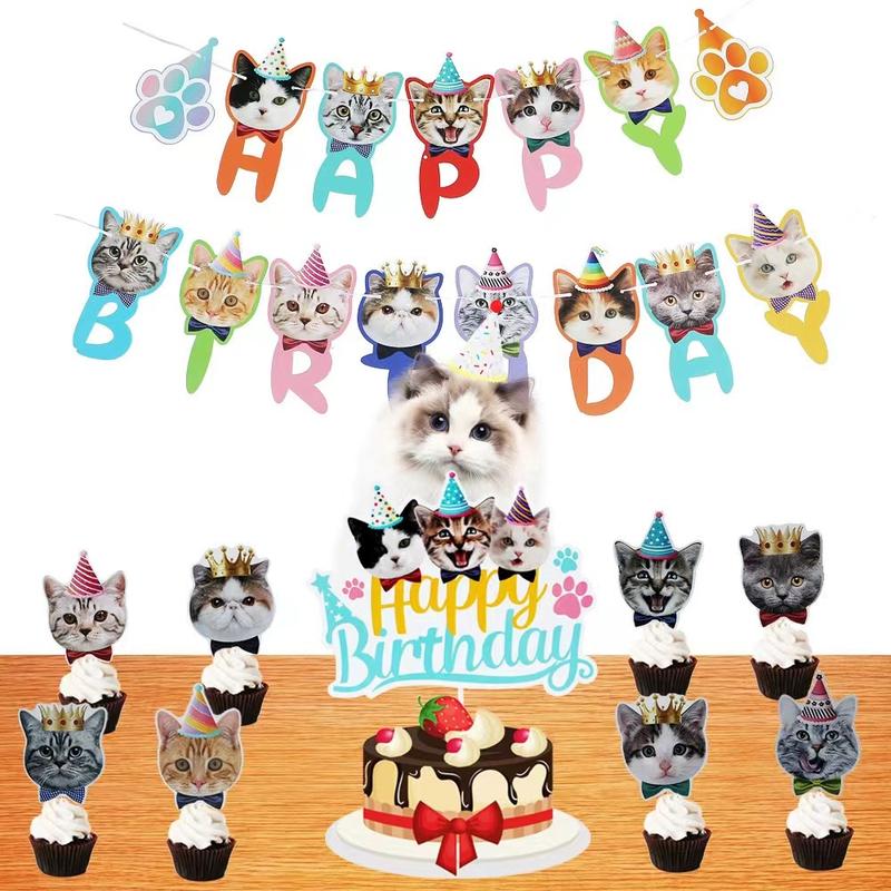 Add a touch of feline fun to your birthday bash with our Happy Birthday Cat Birthday Banner! Featuring cute cat faces, this Kitty Cat Theme Party Bunting Decoration is perfect for cat adoption birthday parties and any cat lover's celebration.