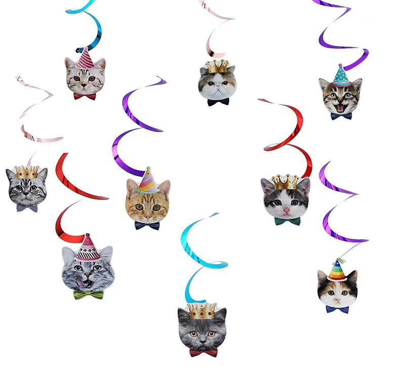 Happy Birthday Cat Birthday Banner, 10 PCS Cat Face Party Banner, Kitty Cat Theme Party Bunting Decoration for Cat Adoption Birthday Party Favors - Colour: cat banner new