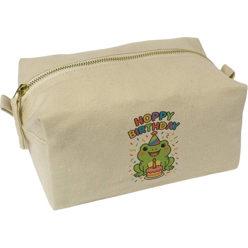 'Happy Birthday Frog' Canvas Wash Bag/Makeup Case (CS00045552)