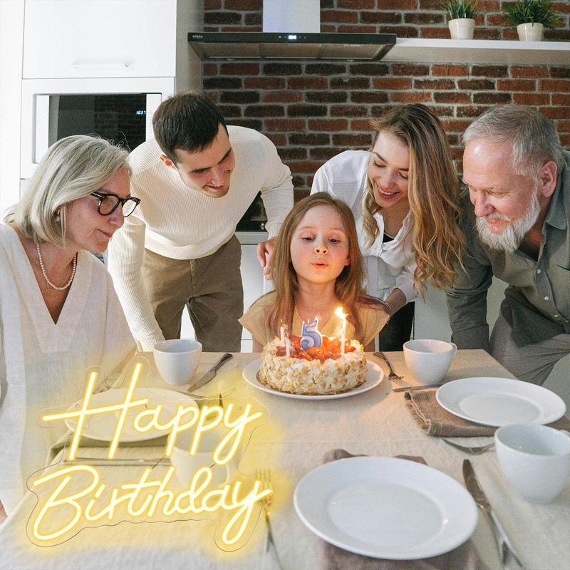 Neon Happy Birthday Sign is perfect for birthdays of all ages, from children's parties to milestone celebrations. The sign's warm glow creates an inviting ambiance that will make your birthday celebration truly unforgettale