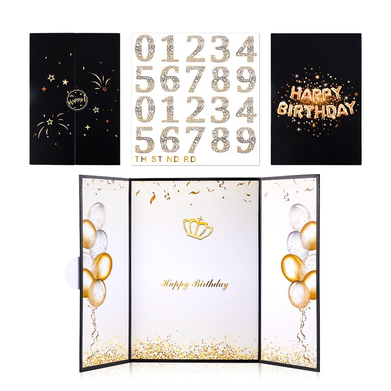 - Creative Design: Our birthday signature book features a black and gold design, adorned with fireworks, stars, and more on the cover. The inside includes balloons, crowns, and other festive elements. Also, we offer number stickers for your DIY creation, adding a joyful touch to your birthday celebrations.