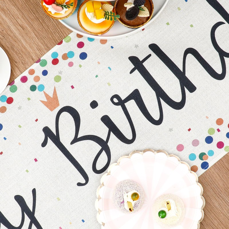 - Ideal Size: This happy birthday table runner measures approximately 33 x 183cm/13 x 72in, suitable for tables that accommodate 4-6 people, perfect for decorating your coffee table, dining table, and will be the perfect backdrop for birthday party photos.