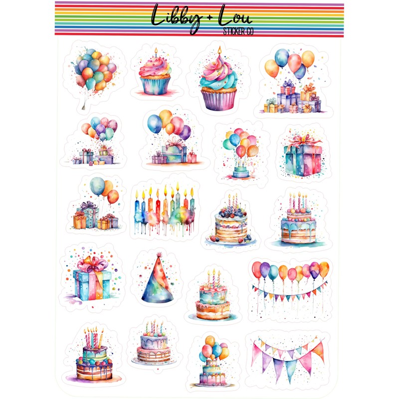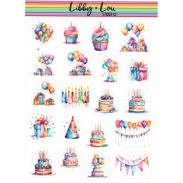 Happy Birthday Watercolor Planner Sticker | Libby and Lou Sticker Co