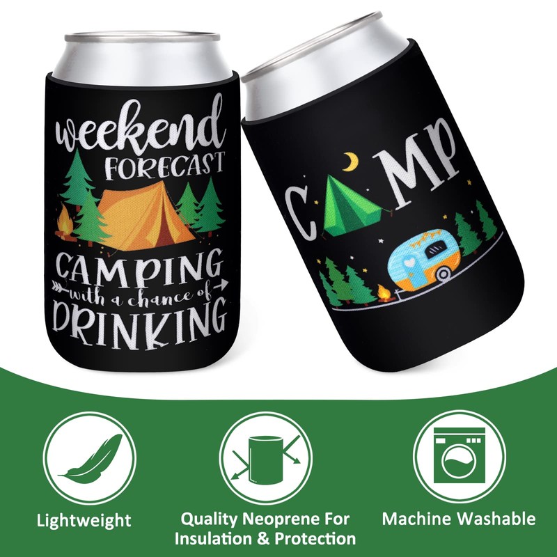 - CAMPING CAN COOLER SLEEVES:The package includes 6pcs camping can sleeves in 6 patterns (double:sided design), printed with funny camping quotes, featuring the tent, recreational vehicle(RV), bonfire, s'more, and so on.