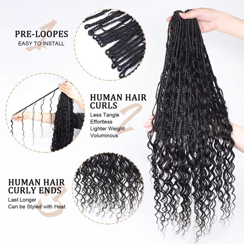 - 【Lightweight,Comfortable & Easy to Install】Our box braid crochet hair with human hair curls are lightweight and comfortable to wear, make Installation more Easy and Convenient,No Glue & Gel,Friendly for Beginners, Just Wear and Go.