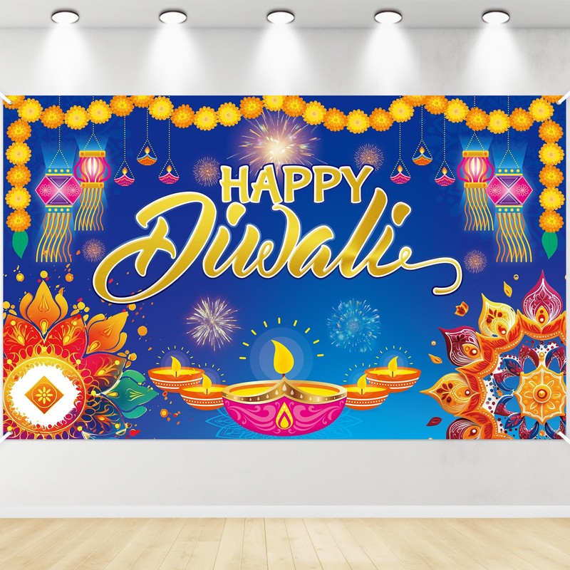 - Product Details: Happy Diwali banner measures 71 x 43 inches, perfect for decorating the festival of lights.
