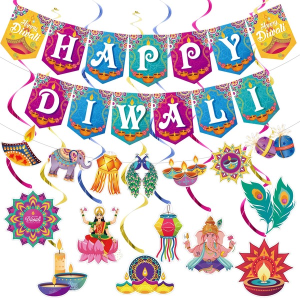 - PACKAGE INCLUDES:you will receive 1 piece of happy Diwali banner,1piece diwali themed banner and 8pcs Diwali Hanging Swirls Decorations,which are sufficient to meet your decorative needs and novel to match your diverse party decorations.