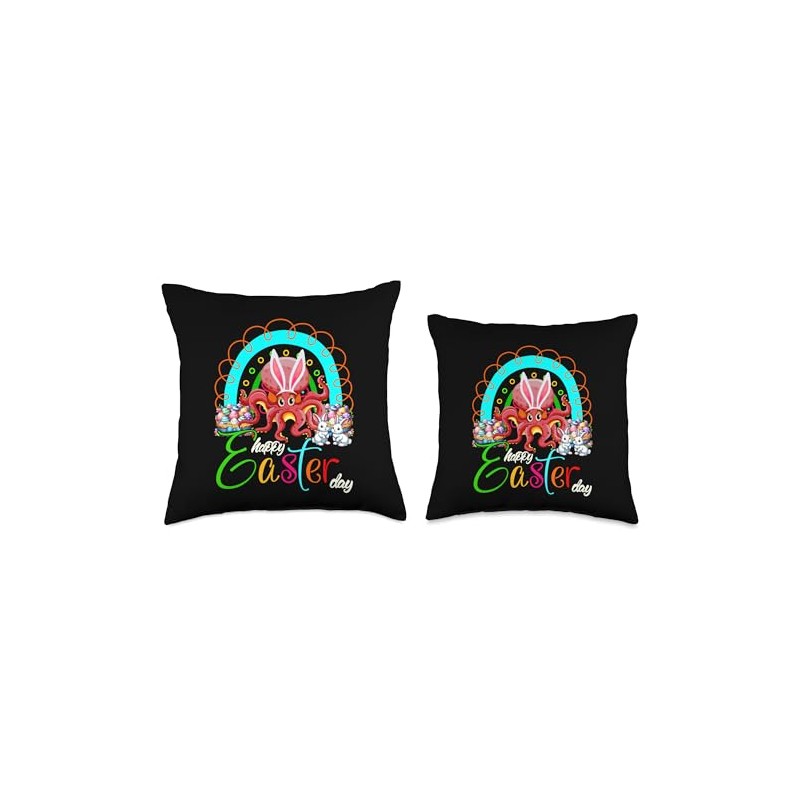 Happy Easter Day Bunny Octopus Chocolate Eggs Basket Rainbow Throw Pillow