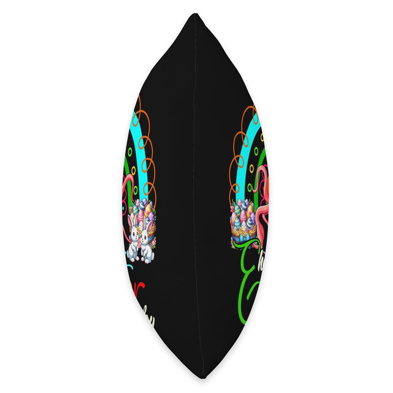 Happy Easter Day Bunny Squid Chocolate Eggs Basket Rainbow Throw Pillow