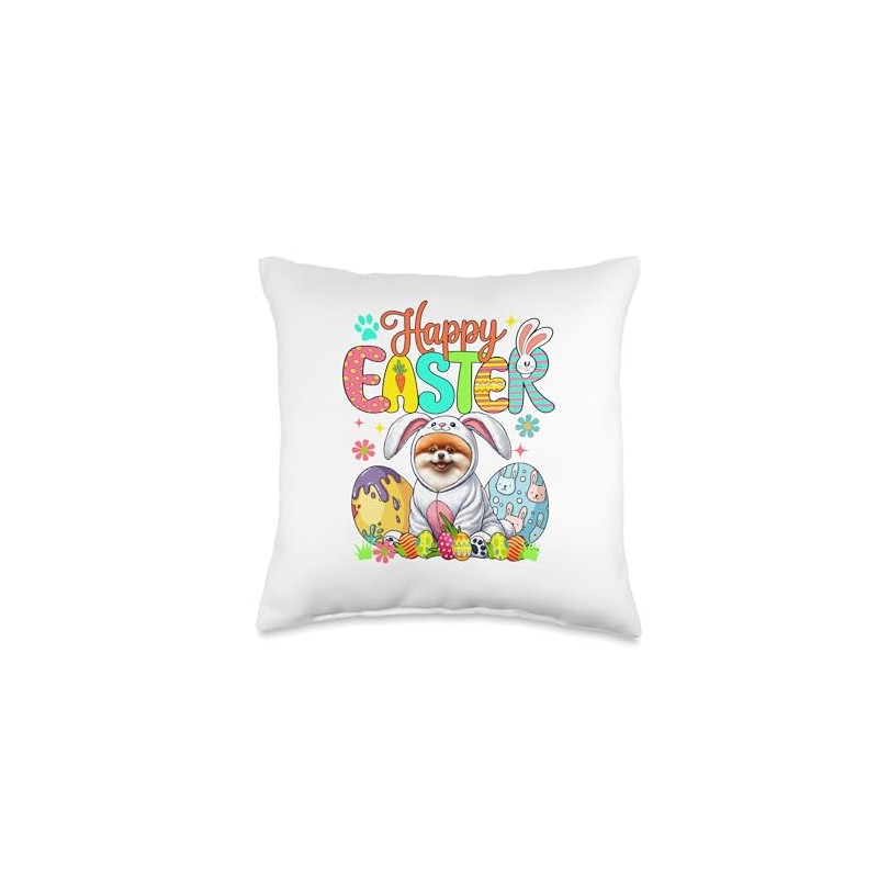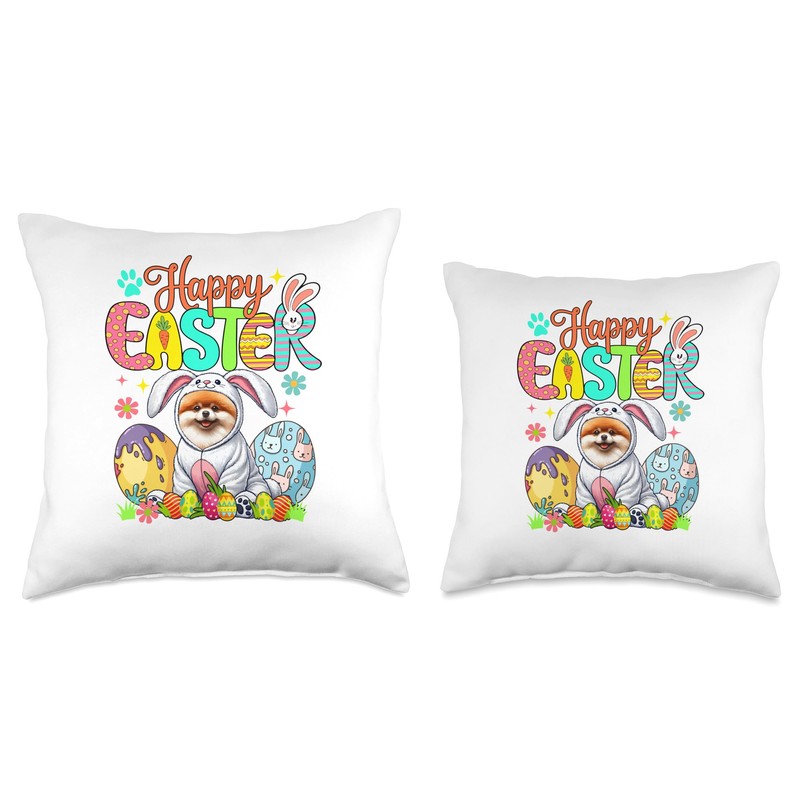 Happy Easter Pomeranian Cosplay Bunny Chocolate Eggs Owner Throw Pillow