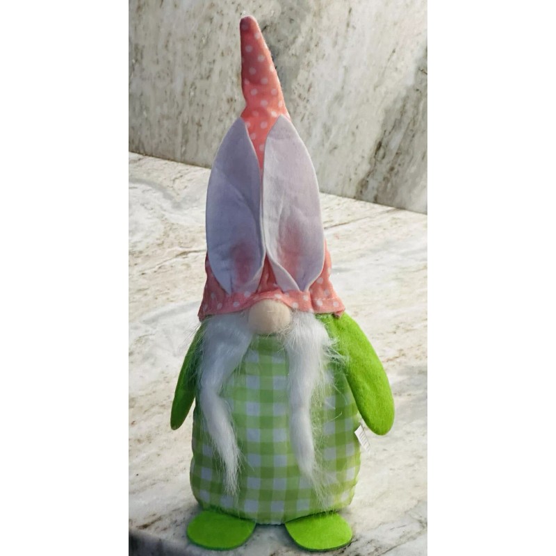 Happy Easter Standing Green Polka Dot Hat w/ Bunny Ears Doll - Spring Easter Country 12Inch