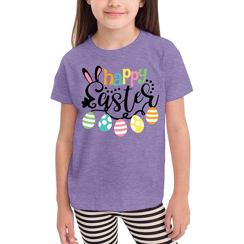 Happy Easter T Shirt Toddler Baby Girls Boys Bunny Rabbit Graphic T-Shirt Easter Egg Letter Print Tees Tops Purple