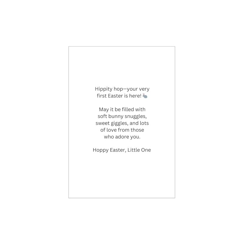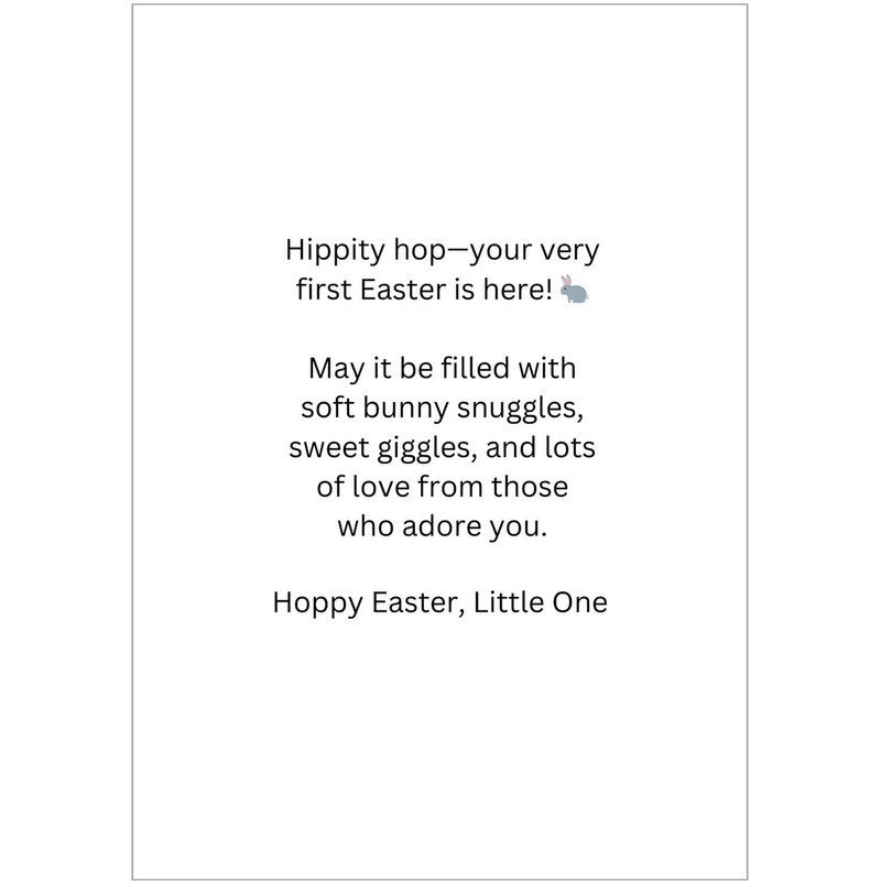 • Inside: Hippity hop - your very first Easter is here! May it be filled with soft bunny snuggles, sweet giggles, and lots of love from those who adore you. Hoppy Easter, Little One