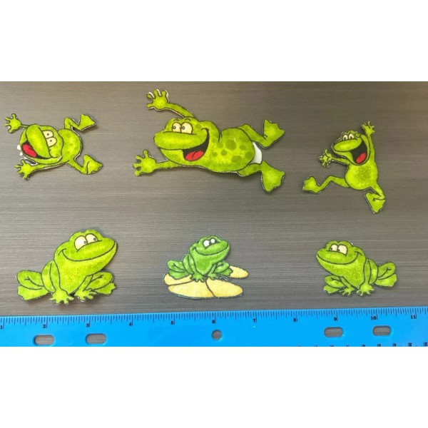 These are Happy Frogs Iron on Fabric Appliques Pre-Cut