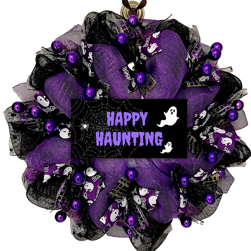 Happy Haunting Halloween Handmade Deco Mesh Wreath
