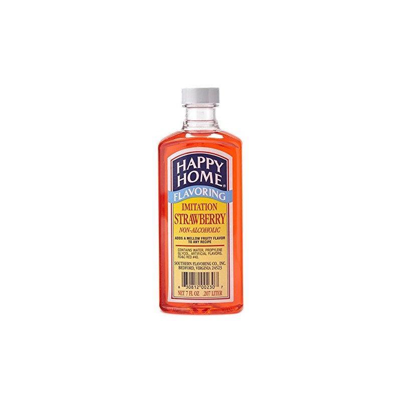 - FEATURES & BENEFITS - Happy Home imitation strawberry flavoring is made with high-quality ingredients and is alcohol-free. Certified Kosher.