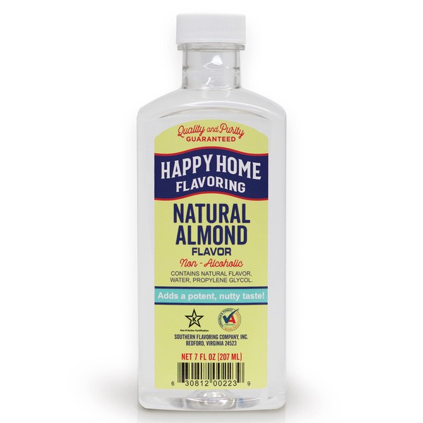 - HAPPY HOME NATURAL ALMOND FLAVORING - Southern Flavoring's pure almond flavoring is a professional baker's secret. This popular robust natural almond flavor is available in an 7 oz. bottle.