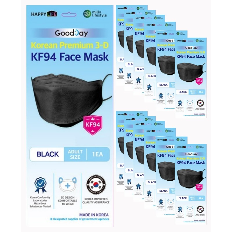FLEXMON [Happy Life] Premium 3D Black KF94 Face Mask, Good Day, Individual Pack Made in Korea (12)