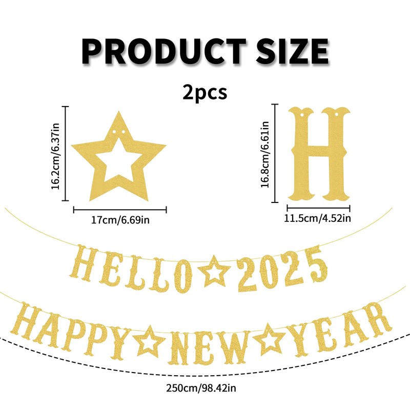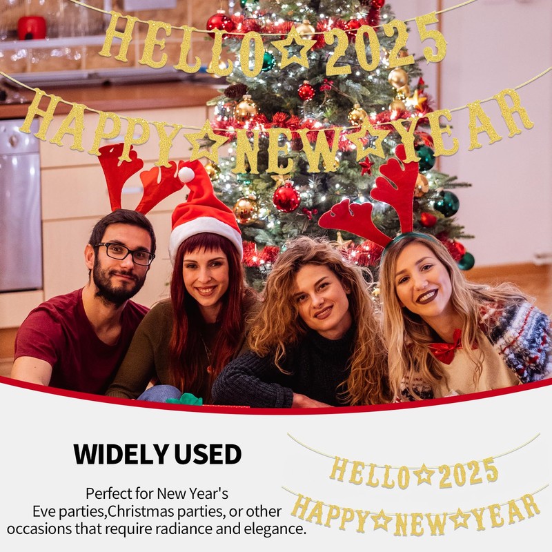 - ✨Eye-Catching Design: Our Happy New Year Banner features a vibrant “Hello 2025” message beautifully crafted with glitter paper, instantly adding a festive charm to any celebration and captivating your guests’ attention.