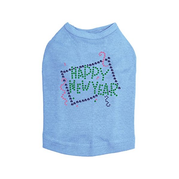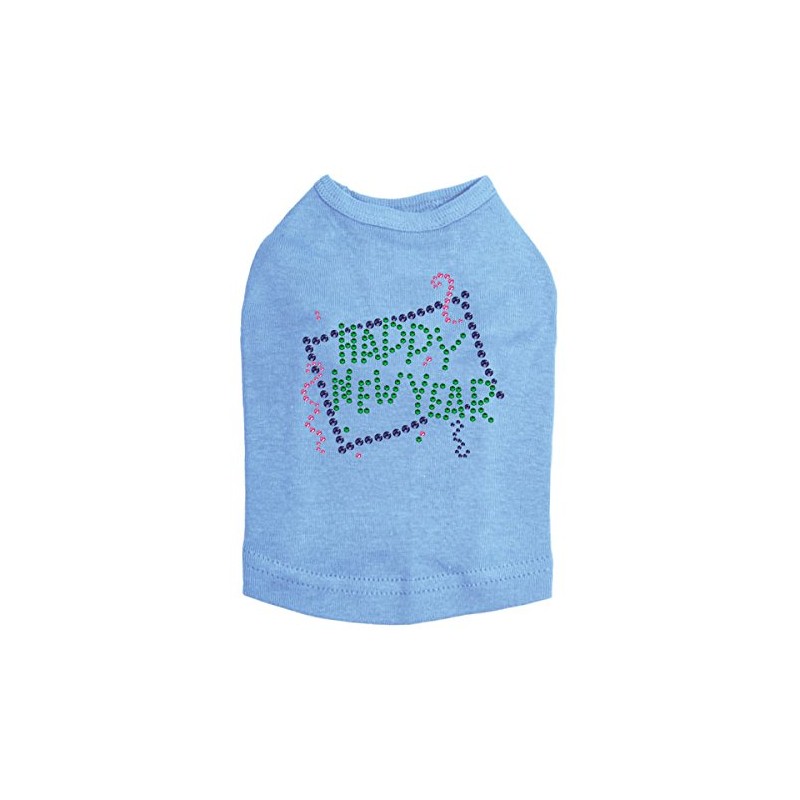 Happy New Year Confetti - Bling Rhinestone New Year Dog Shirt, M Blue
