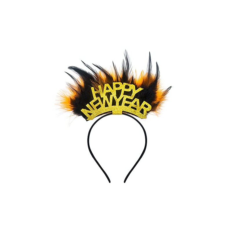 - đăDesignă: The New Year's headband has orange and black feathers, and the shiny HAPPY NEW YEAR words design makes the overall shape bright, vibrant and beautiful. This New Year head bands can make you dazzling at the New Year party and add a festive atmosphere.