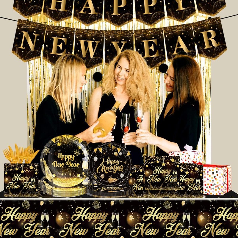 - Widely Decorative Occasions: This black and gold disposable happy new year party supplies is perfect for any occasion, such as New Year's parties, barbecues, New Year's Eve parties, family gatherings, celebrations. As a useful and good-looking disposable party tableware, you can make your party full of relaxed and happy atmosphere
