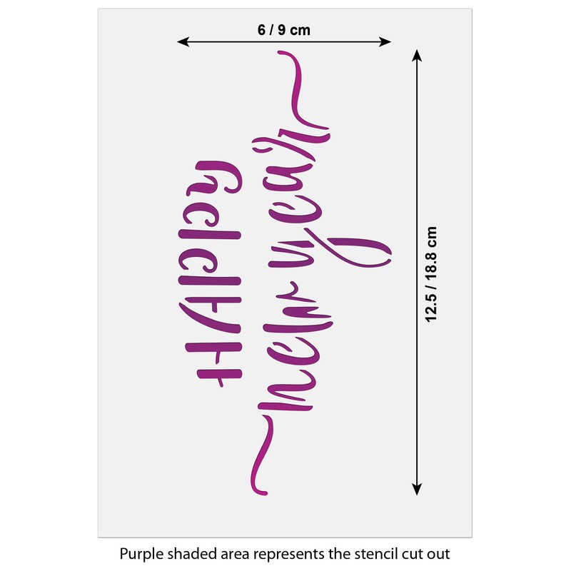 - Our Happy New Year Stencil features elegantly flowing calligraphy that's perfect for a whole range of New Year crafting activities.