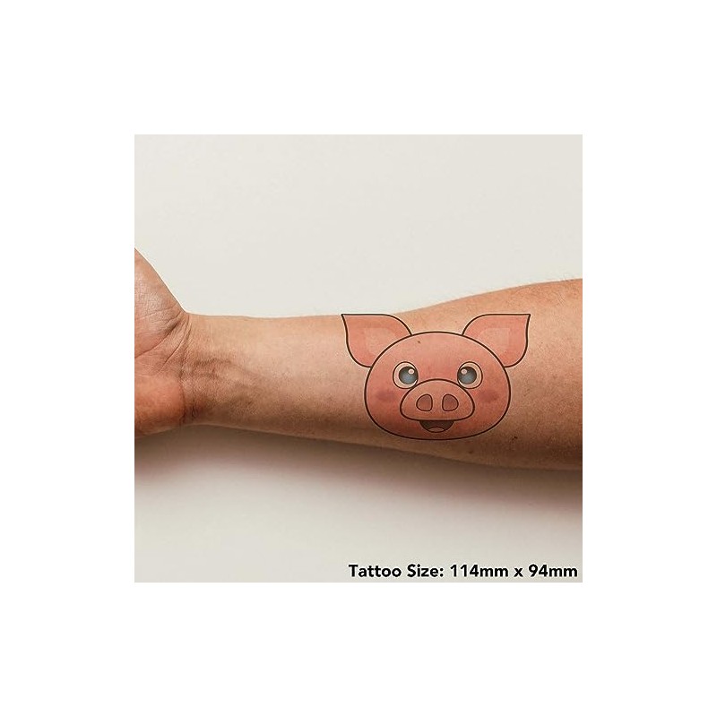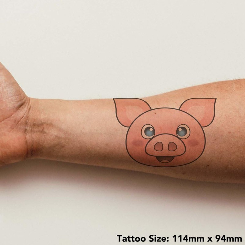 'Happy Pig Face' Temporary Tattoo - Water Resistant, Skin-Safe, Non-Toxic Transfer (TO00063171)