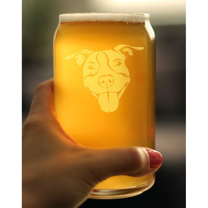 Happy Pitbull - Beer Can Pint Glass - Fun Unique Pitbull Themed Dog Gifts and Party Decor for Women and Men - 16 oz
