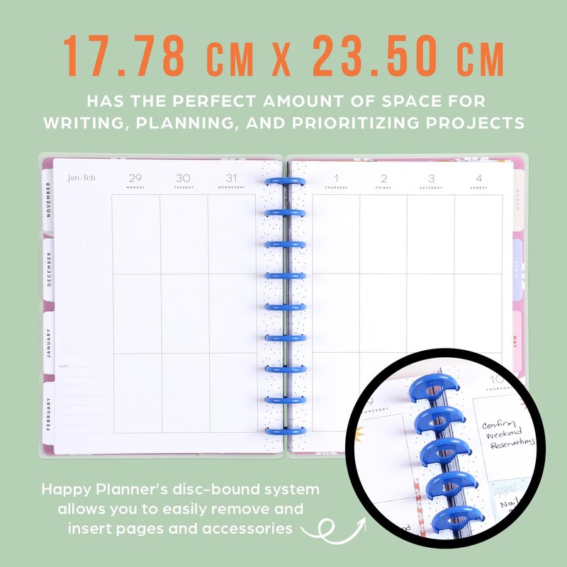 Happy Planner 2023 School Planner, 12-Month Disc-Bound Daily, Weekly, and Monthly Planner, July 2023–June 2024, Vertical Layout, Fun Fleurs Theme, Classic Size, 17.78 x 23.50 cm (7" x 9 3/4")