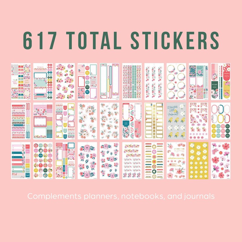 - HAPPY PLANNER STICKER PAD: This mum-themed planner sticker book pairs perfectly with our diary planners, notebooks, and journals. It includes 30 sheets and 617 planning stickers featuring inspirational quotes, colourful memo boxes, and budding floral designs to enhance any planner!