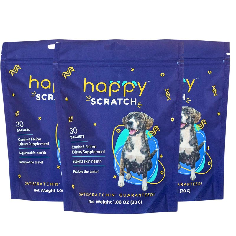 - SUPPORTS SKIN & IMMUNE HEALTH IN PETS: Happy Scratch supports your pet's overall well-being. The supplement's ingredients promote a shiny, healthy coat, and boost the immune system.