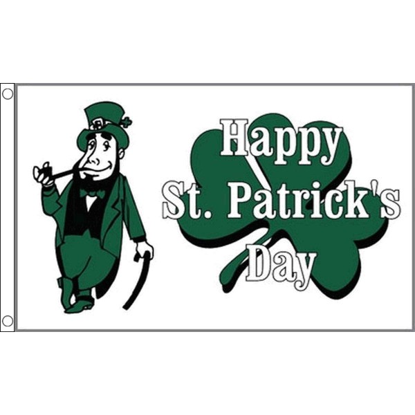 Happy St Patricks Day white Flag 5 x 3 FT - 100% Polyester With Eyelets FlagSuperstore©