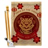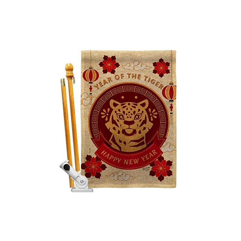 Happy Tiger Year Burlap House Flag Set New Lunar Good Luck Prosperous Seasonal Arrival Blessing Small Decorative Gift Yard Banner Double-Sided Made In USA 28 X 40