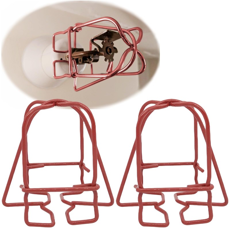 - đ„ăPREMIUM BUILTă- One piece double hook sprinkler wire enclosure. This wire clip type sprinkler head cover is durable and sturdy built. Heavy iron wire construction fire sprinkler head covers. Red coating is easily recognizable both for fire safety purposes and to reduce chances of being accidentally hit and burst and bump