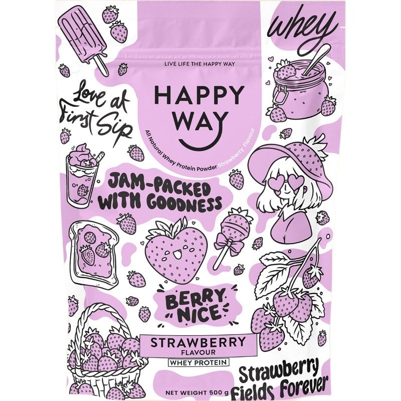Happy Way Whey Protein Powder Strawberry 500g is 100 percent natural and made with only good-for-you ingredients to boost energy, support strength, and nourish your mind and body from the inside out.