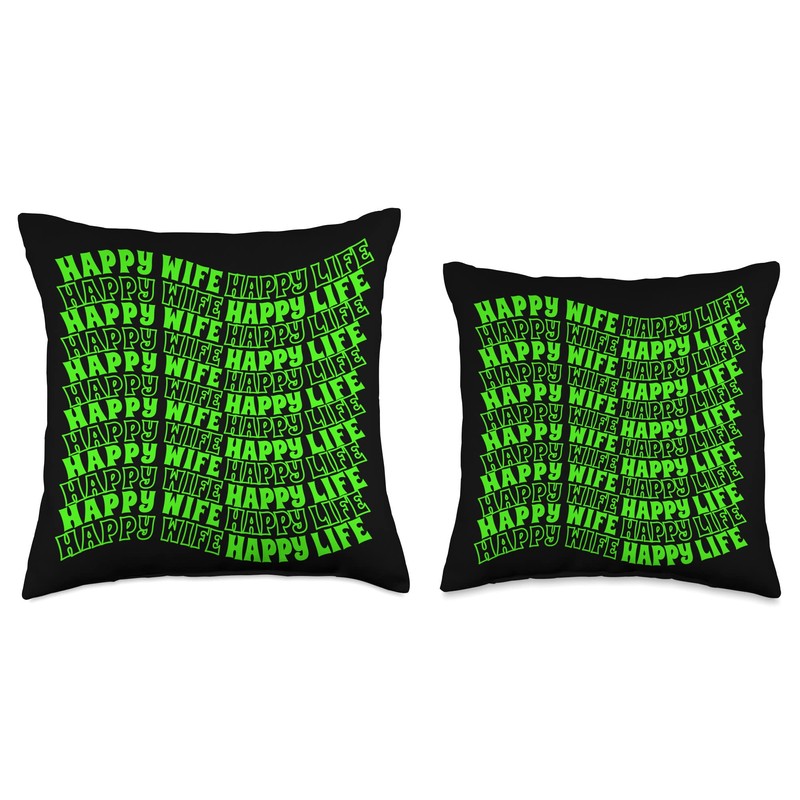 Happy Wife Happy Life Engagement Marriage Gift Wife Happy Life Engagement Marriage Throw Pillow, 16x16, Multicolor