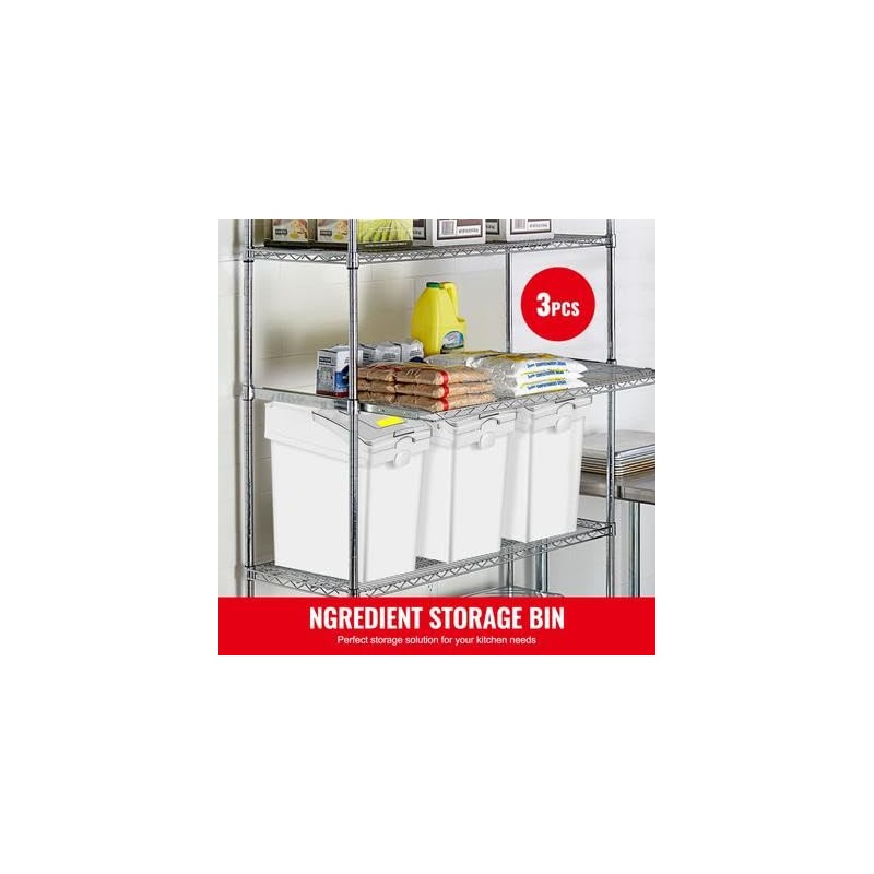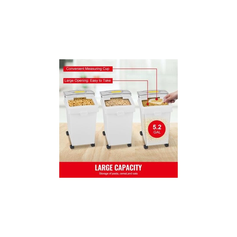 - Visible Lid & Rollers: The transparent lid enables you to promptly check the food quantity left. The container comes with detachable wheels for effortless movement. The flat top can hold seasoning bottles, and you can stack the containers to save space.
