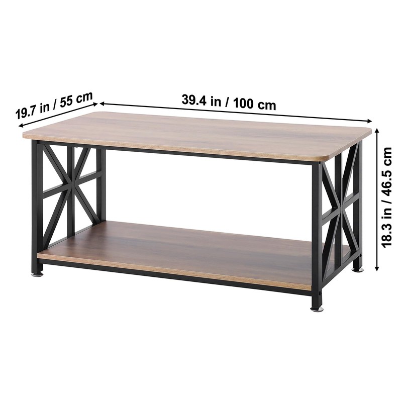 Happybuy 40" Farmhouse Coffee Table - Rectangular with Open Storage, Rustic Wooden Table for Living Room, Bedroom, Apartment, Studio, Brown & Black