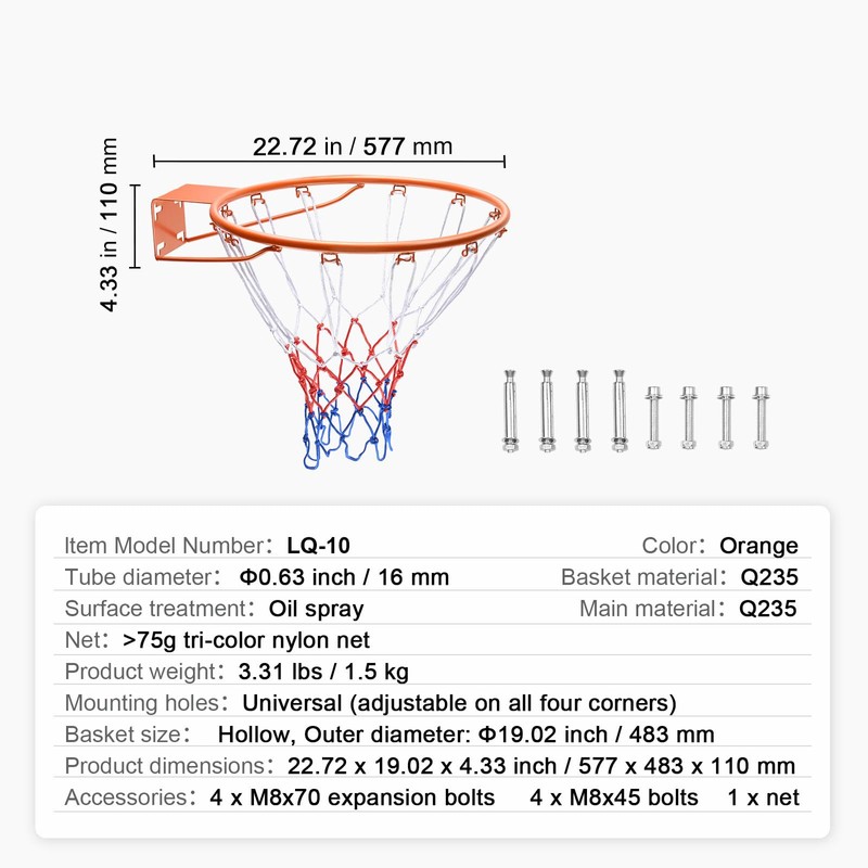 - Versatile Design: The Happybuy basketball rim features a standard 18-inch size, making it an ideal replacement for worn-out hoops. It meets official basketball dimensions, perfect for various indoor and outdoor games.