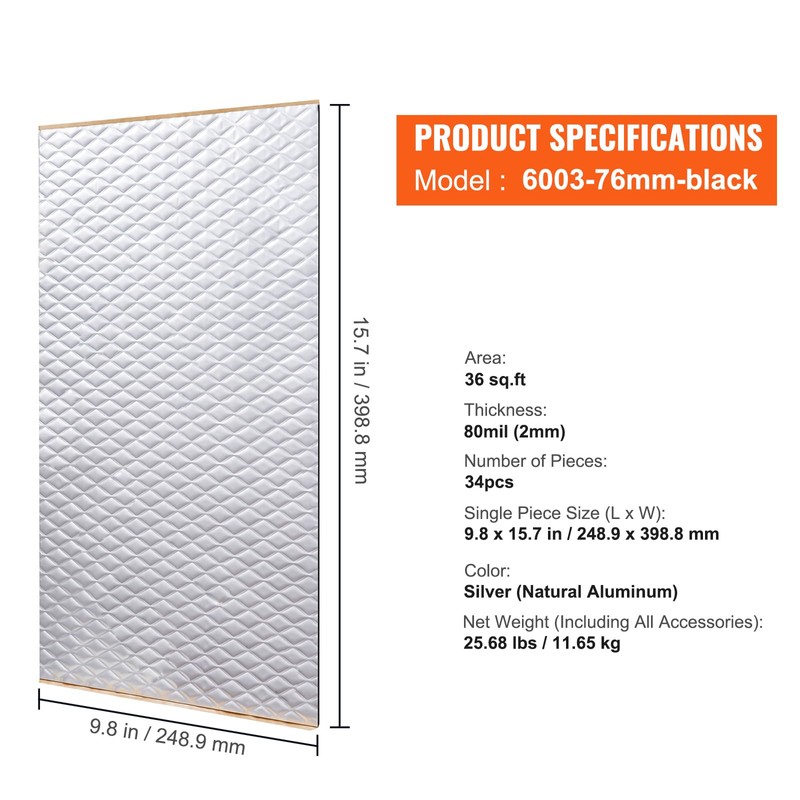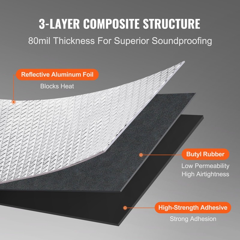 - Exceptional Soundproofing Performance: Featuring a 3-layer composite structure, the mats include a heat-resistant aluminum foil surface, a butyl rubber layer with low air permeability, and a high-adhesive backing. These mats provide noise reduction, heat insulation, waterproofing, and fire resistance.